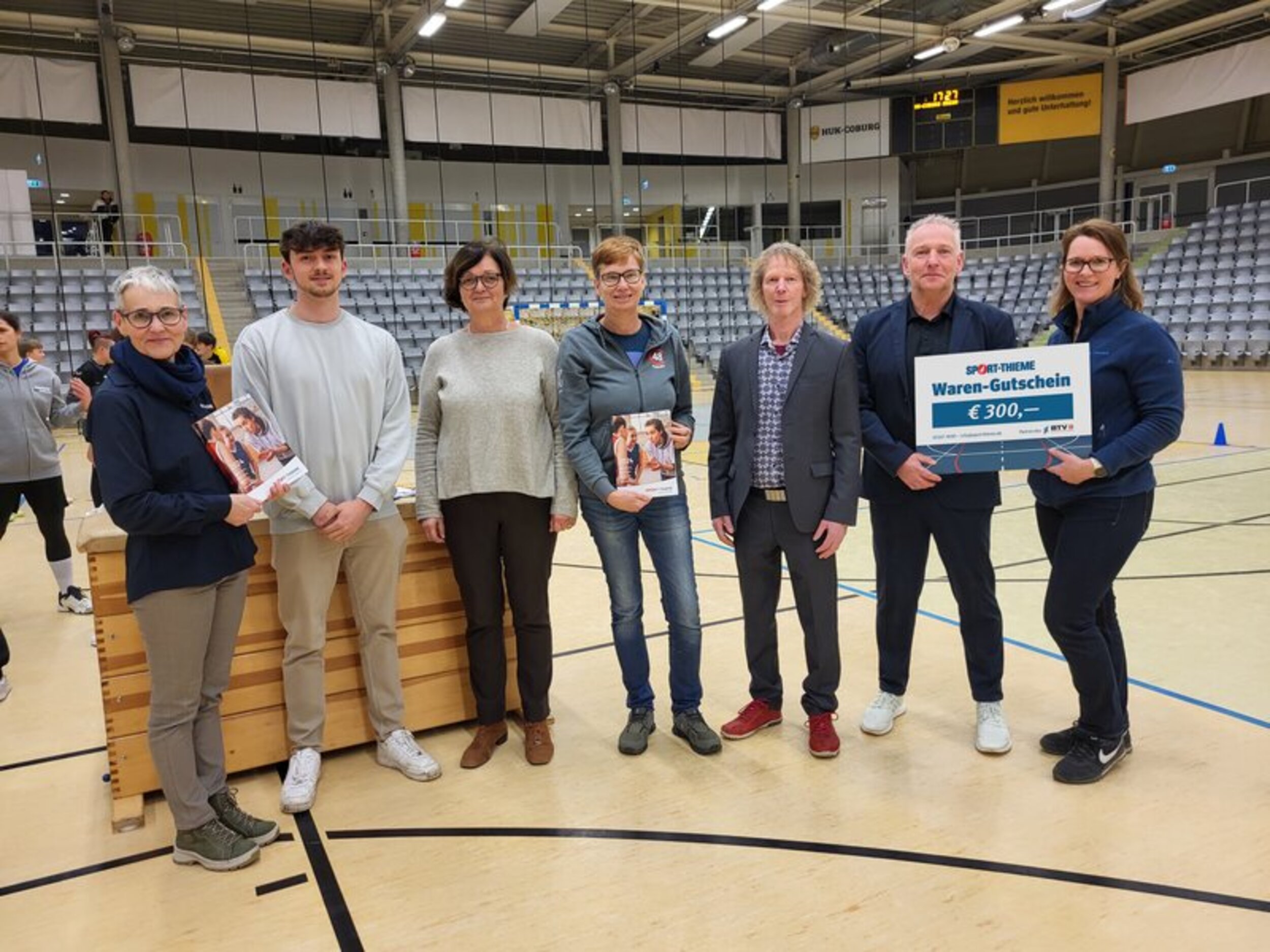 Die symbolische Übergabe eines Materialgutscheins in Höhe von 300 € erfolgte durch Ute Müller und Martina Yanik von Sport Thieme an die Vereinsvorsitzende Astrid Hess und Schulleiterin Jasmin Müller-Alefeld. Der Materialgutschein ermöglicht es der SAG Gerätturnen, neue Materialien anzuschaffen und somit die sportlichen Aktivitäten weiter zu bereichern. Ebenfalls vor Ort war der SAG-Übungsleiter Jannik Stadter, der beim TV 1848 Coburg gerade sein FSJ absolviert.