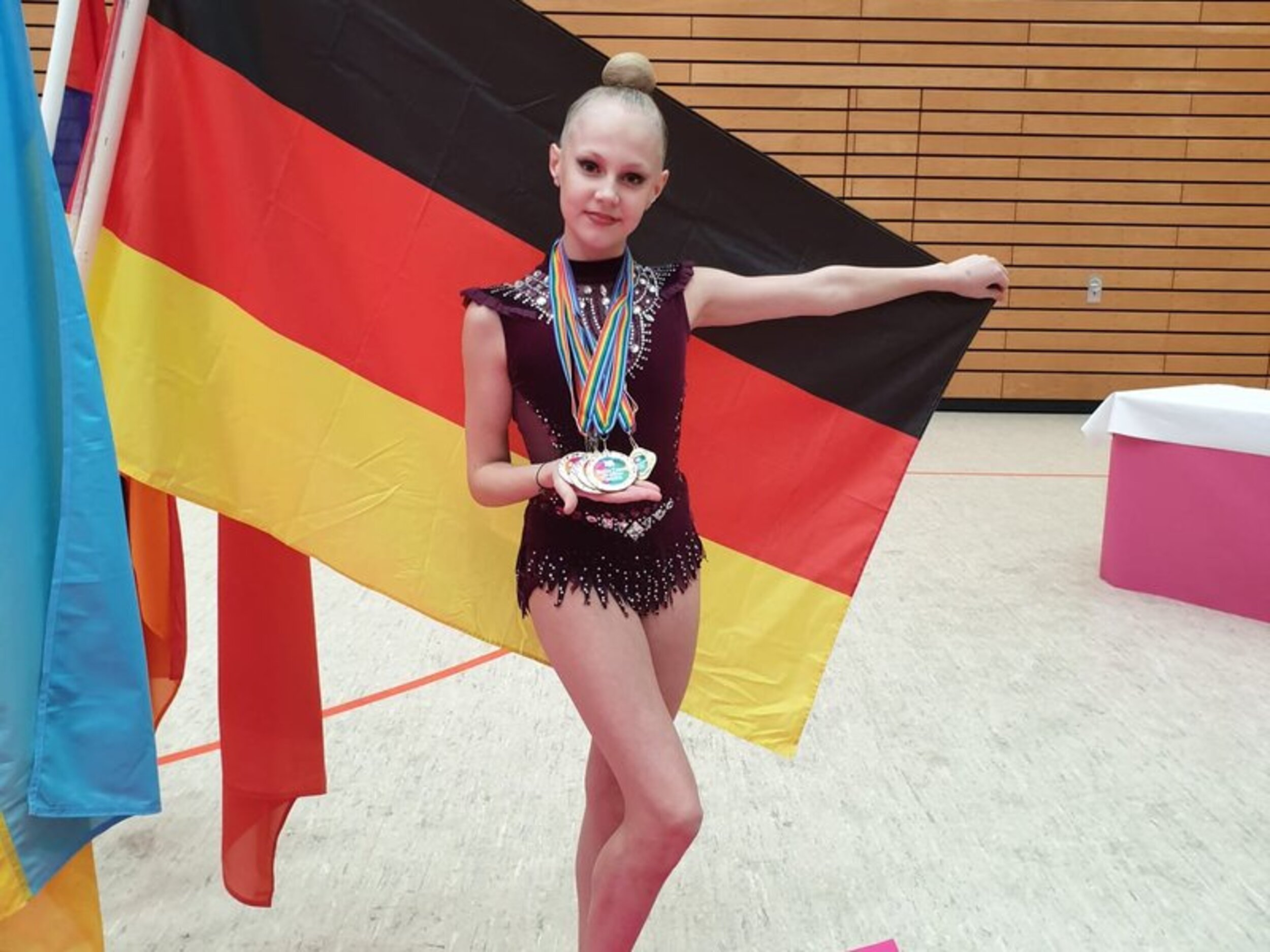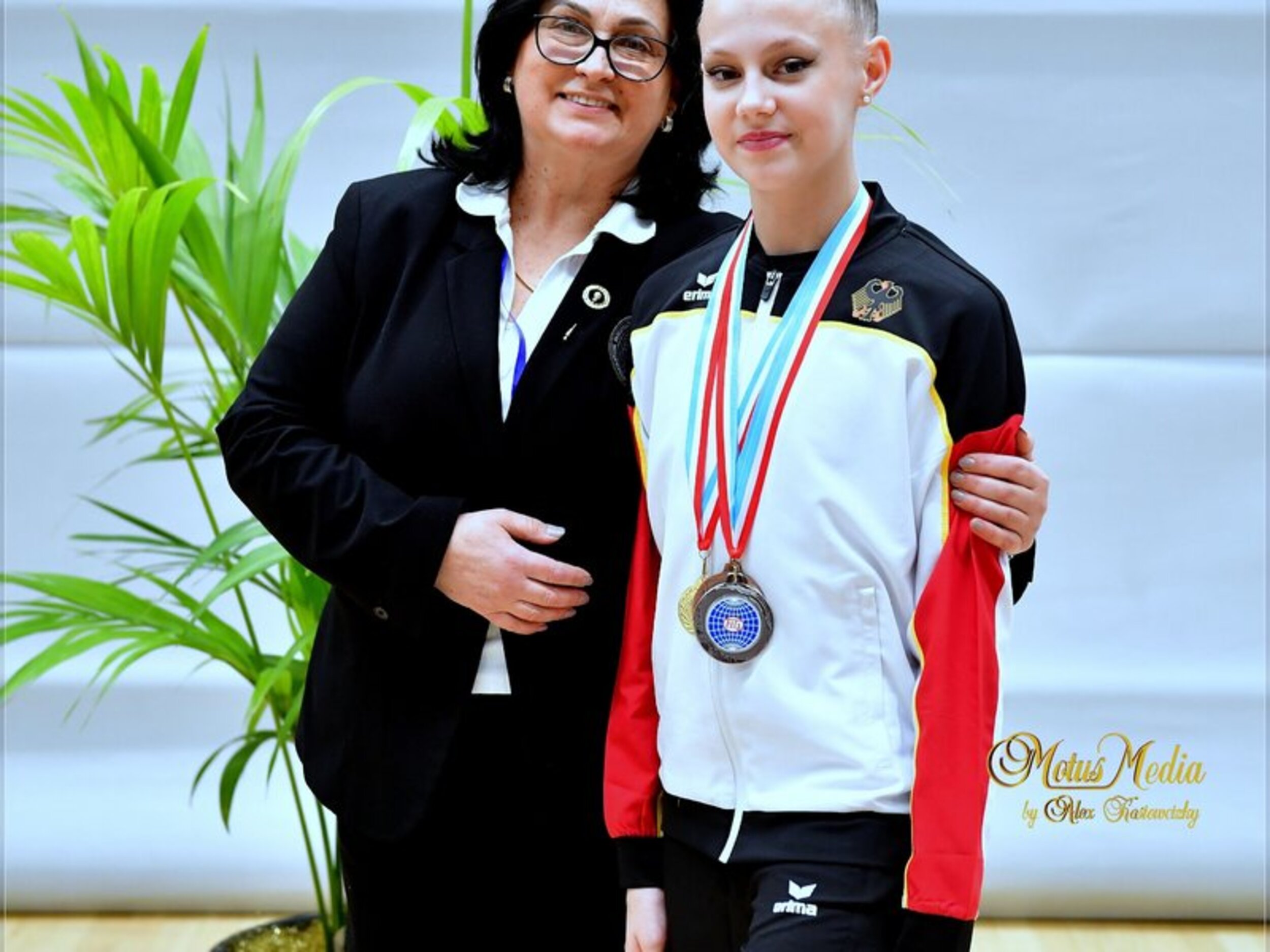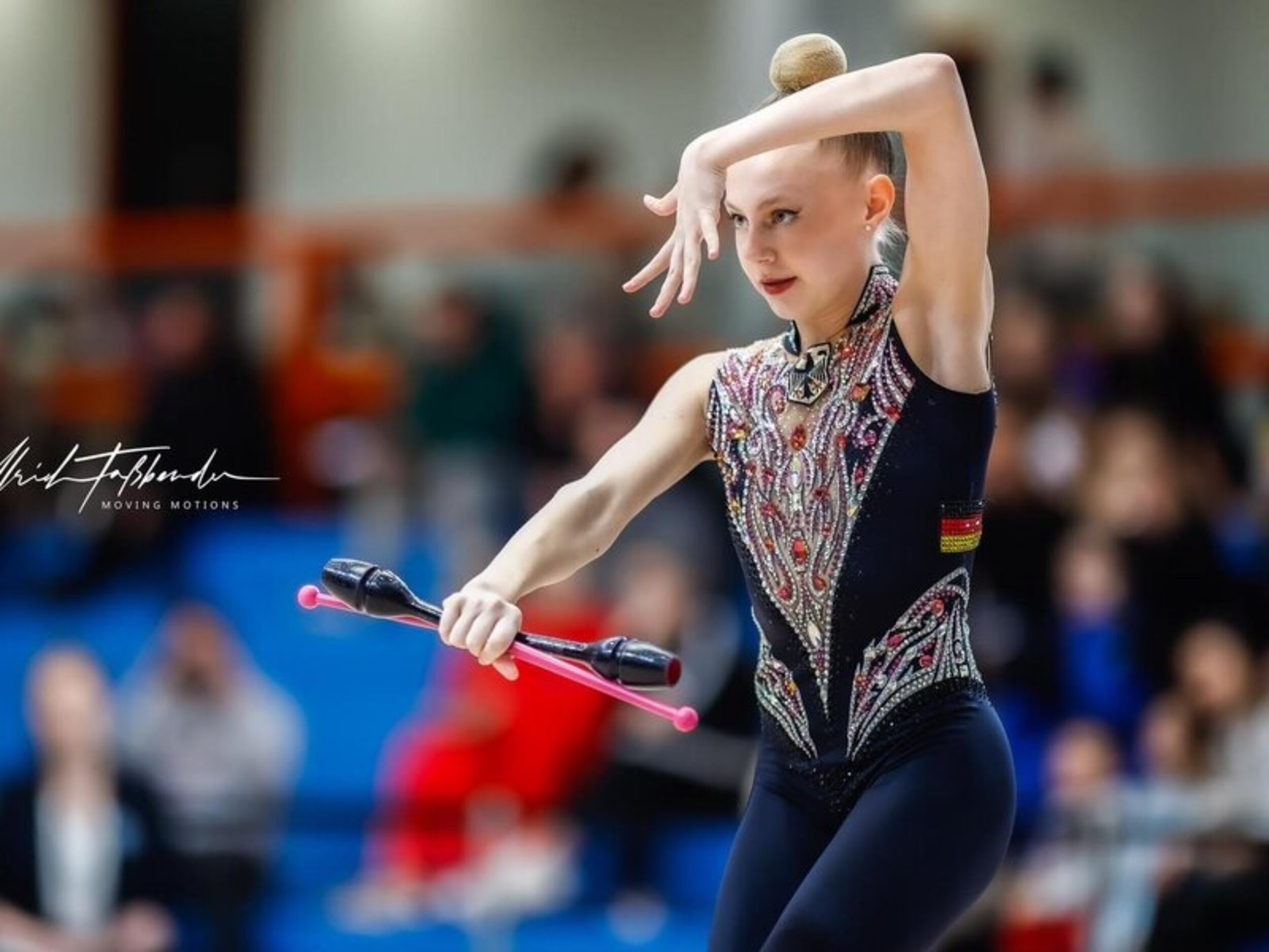 Der erste von drei entscheidenden Wettkämpfen findet am 03.04.2024 in Schmiden statt. Um perfekt auf die Quali vorbereitet zu sein, nahm Alina schon erfolgreich an den ersten Turnieren teil. Dabei erreichte sie beim FIG Grazia Cup in Budapest mit Reifen und Ball jeweils das Finale. Auch bei den Internationalen Berlin Masters ergatterte sie mit dem Reifen den dritten Platz und mit Ball einen tollen zweiten Platz.