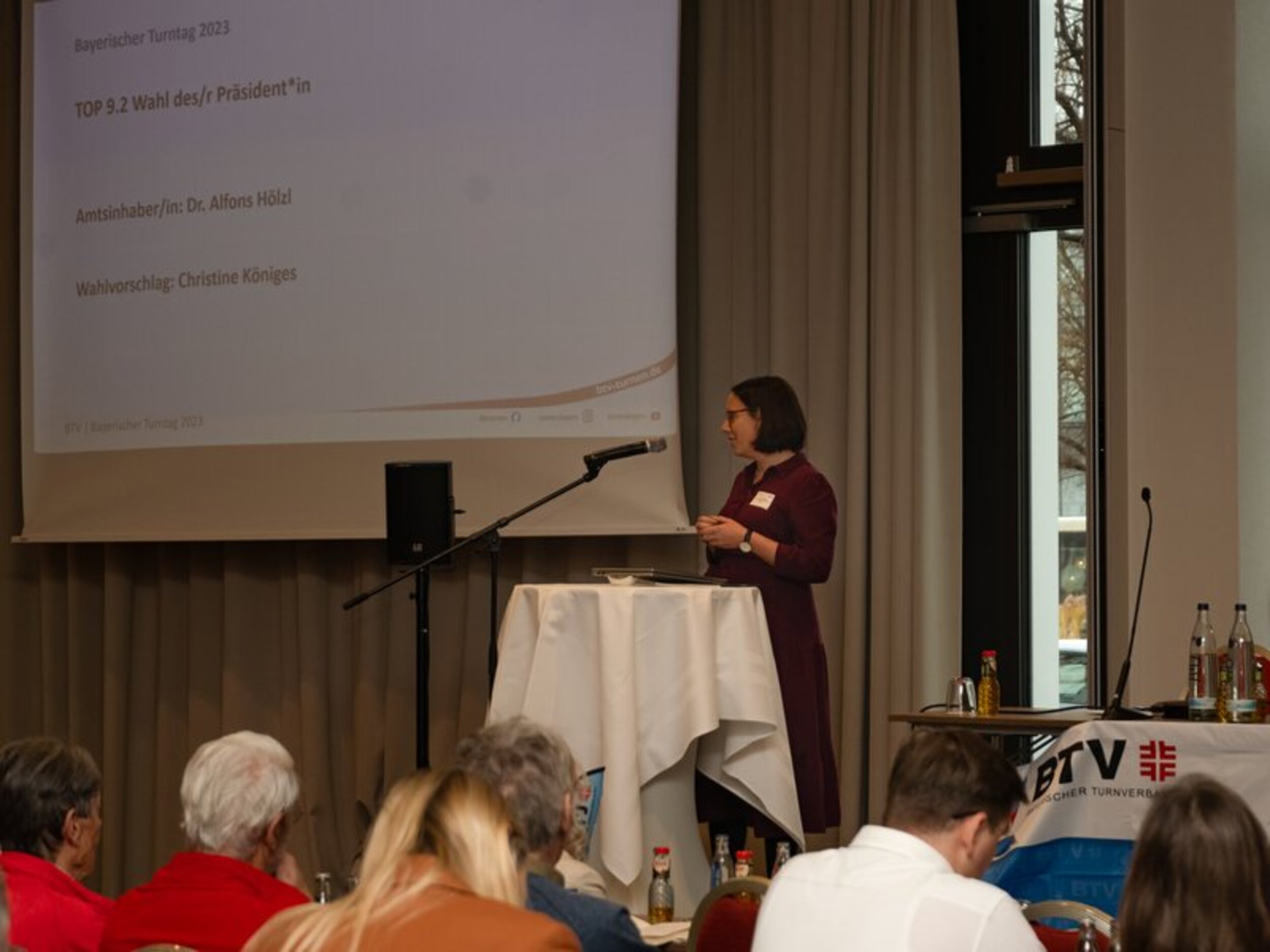 Der Bayerische Turnverband (BTV) hat sich auf dem 28. Bayerischen Turntag in München personell neu aufgestellt: Im Fokus stand dabei die Wahl des Nachfolgers von Dr. Alfons Hölzl als BTV-Präsident, der nach 16 Jahren nicht mehr für das Amt kandidiert hatte. Hier schenkten die Delegierten der bisherigen Vizepräsidentin Christine Königes das Vertrauen. Sie ist damit gleichzeitig die erste Frau und auch jüngste Präsidentin in der 162-jährigen Historie des Verbandes.