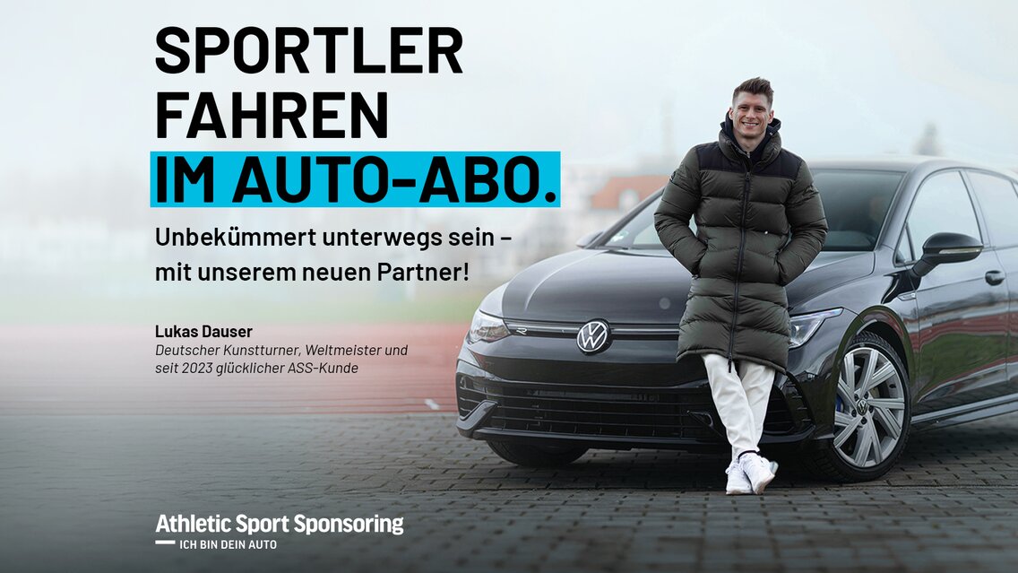 Erfahre alles über das einzigartige Konzept unseres Partners Athletic Sport Sponsoring! Bereits seit 1997 bewegt die ASS den Deutschen Sport mit einem unschlagbar günstigen Auto-Abo. Was das bedeutet? Immer Neuwagen zu einer festen monatlichen Rate fahren, in der alles drin ist, außer Tanken. Keine Anzahlungen, keine Schlussraten. Kurze Vertragslaufzeiten für viel Flexibilität und bis zu 30.000 Freikilometer im Jahr. Steig jetzt ein – alle Infos zum Auto-Abo findest du hier.