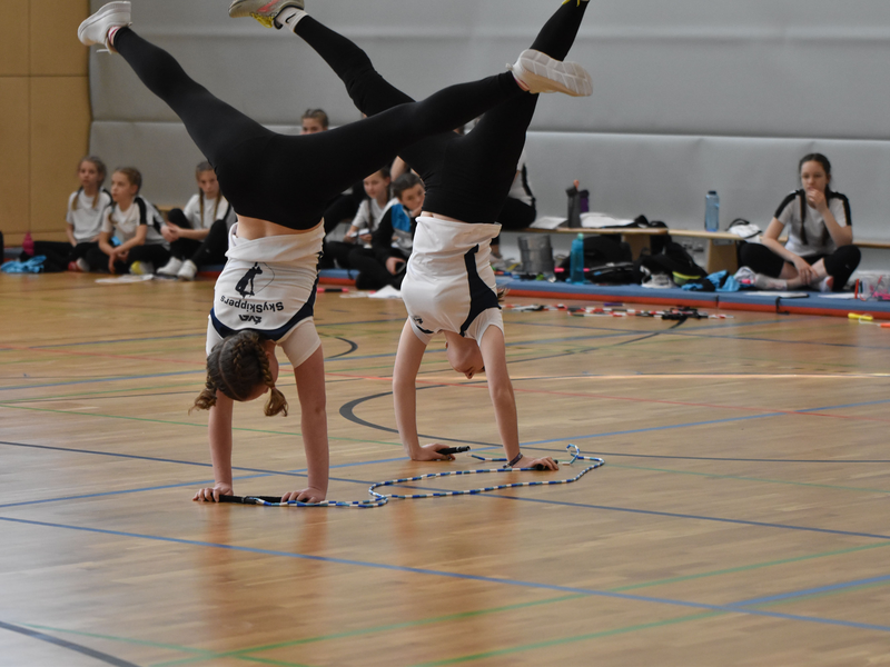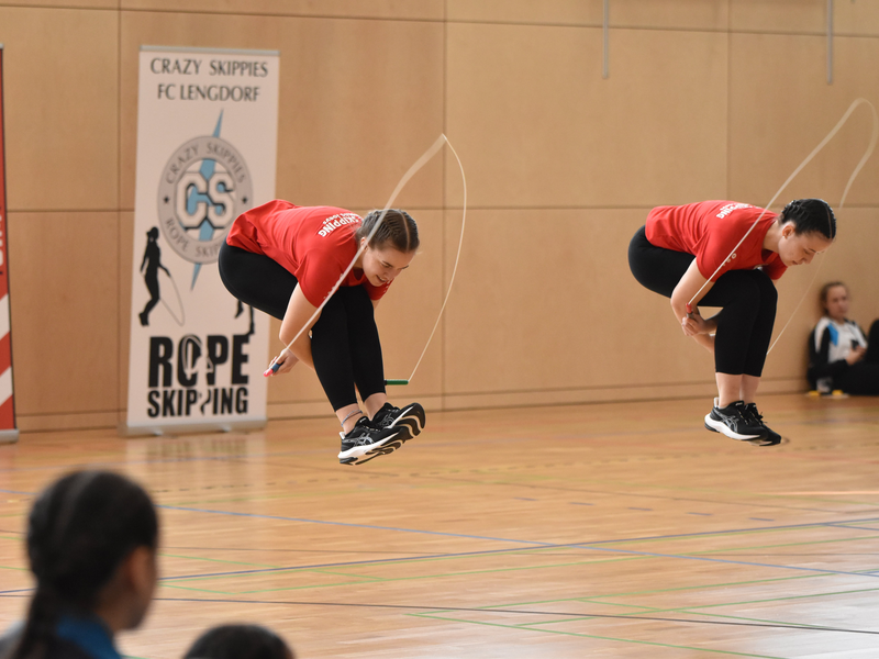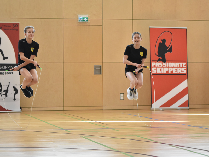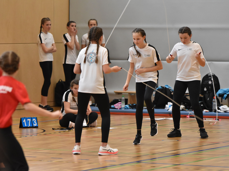 Wie üblich startete der Wettkampf mit den vier Speed-Disziplinen, bei denen die Mannschaften ihre Schnelligkeit unter Beweis stellten. Los ging es mit dem Single Rope, wobei alle Teammitglieder nacheinander mit ihrem eigenen Seil springen und die erreichten Werte im Team aufaddiert werden. Bei toller Stimmung in der Halle mit lauten Anfeuerungsrufen durch Zuschauer und Teammitglieder konnten sich einige Teams bereits die ersten Qualifikationen zur Bundesebene erspringen. Weiter ging es in den Double Dutch-Seilen. Dabei ist besondere Präzision gefragt, da sich Schwinger und Springer genau aufeinander abstimmen müssen. Hier zeichnete sich die Erfahrung der drei Neutraublinger Overall-Teams ab, die die Konkurrenz in ihren Altersklassen deutlich hinter sich ließen. Ebenfalls hervorzuheben ist die Leistung der 12- bis 13-jährigen Mannschaft vom Gastgeberverein München-Ost, die mit viel Konzentration die notwendigen Punktzahlen für die Deutsche Meisterschaft erreichen konnte.