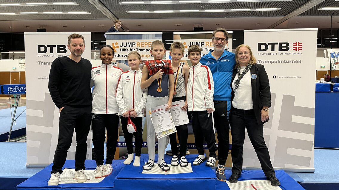 Wie bereits Anfang des Jahres die Doppelminitrampolinspringer wurden nun die Trampolinspringer anlässlich des 50-jährigen Bestehens der Trampolinabteilung des TV Weingarten zum Deutschland Cup eingeladen.