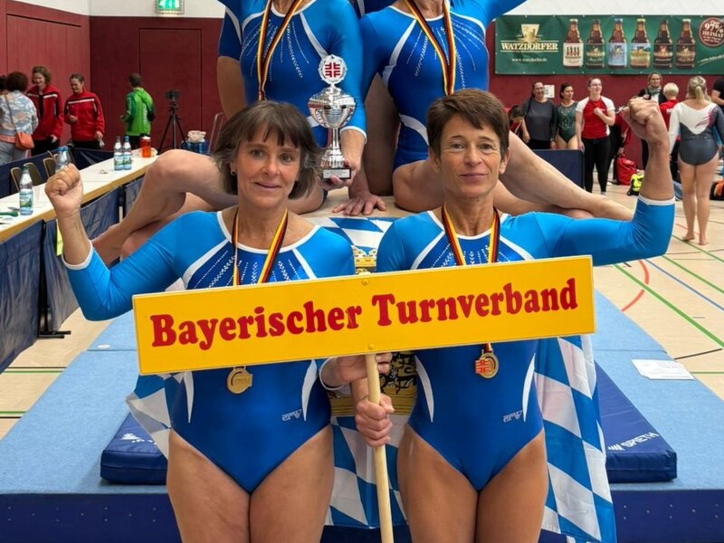 Das erfolgreiche Damenergebnis rundete das Team der Turnerinnen in der Altersklasse 40+ mit einem 3. Platz ab. Nur dem Westfälischem Turnerbund und dem Sächsischen Turnverband mussten man sich in dieser Klasse beugen, das mit 9 Landesturnverbänden ebenfalls sehr gut besetzt war. Für das Team 2024 turnten Anja Barwig (TV Planegg-Krailling), Andrea Kampfer (TSV München-Großhadern), Julia Wüllner (TV Sailauf), Veronika Flöter und Andrea Behacker (beide TSV Unterpfaffenhofen-Germering).