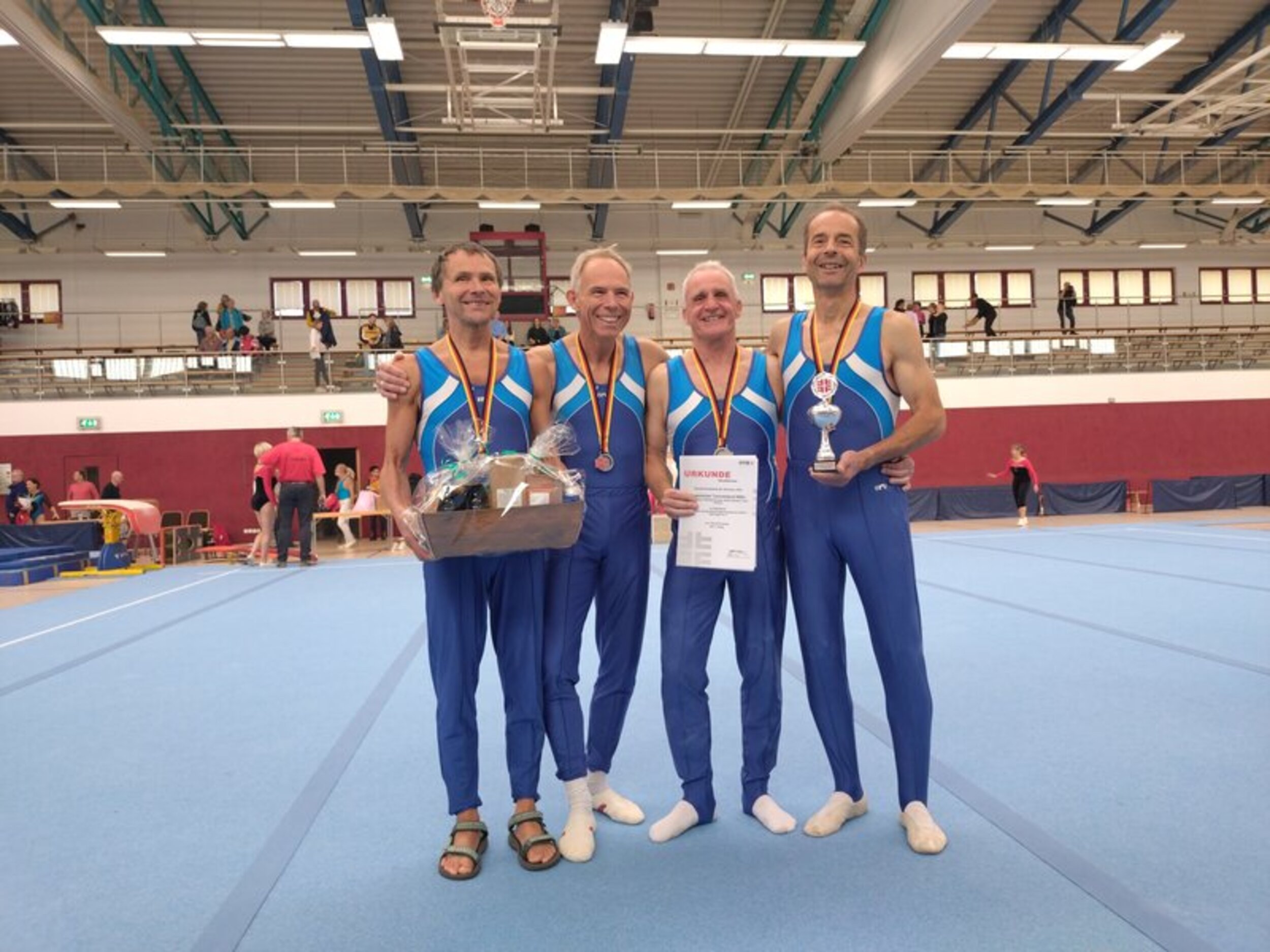 Das bisher erfolgreichste Bayerische Team, die Männer in der Altersklasse 45+ wurden diesmal unter acht Mannschaften Vierter. Nach sieben ununterbrochenen Titeln von 2014 bis 2021 und einem 2. Platz letztes Jahr mussten die Männer jüngeren Teams wie dem Badischen Turnerbund als Sieger, sowie dem Thüringischen Turnverband und dem Märkischen Turnerbund Brandenburg den Vortritt lassen. Für das Team turnten Wilfried Hofer, Roland Hagner (beide KTV Ries), Stefan Schmitz (TSV Weilheim), Michael Weigand (TSV Stadtlauringen), Alexander Baum (TV Großostheim) und Ulrich Engelhardt (TSV Unterpfaffenhofen-Germering). Stefan Schmitz, der neben Wilfried Hofer an allen Titeln beteiligt war, verabschiedete sich mit diesem Wettkampf aus der Altersklasse 45+.