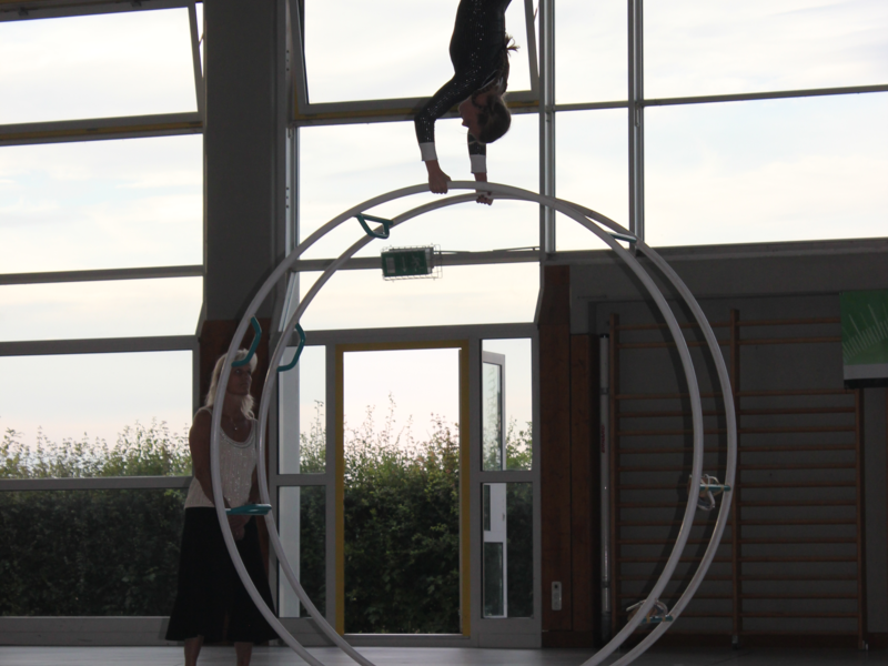 Zum Abschluss folgte die Show „Wicked Wheels“ von der TG Würzburg und eine LED-Cyr-Duo-Show von „Rings in Motion“, die mit faszinierenden Lichteffekten begeisterte.