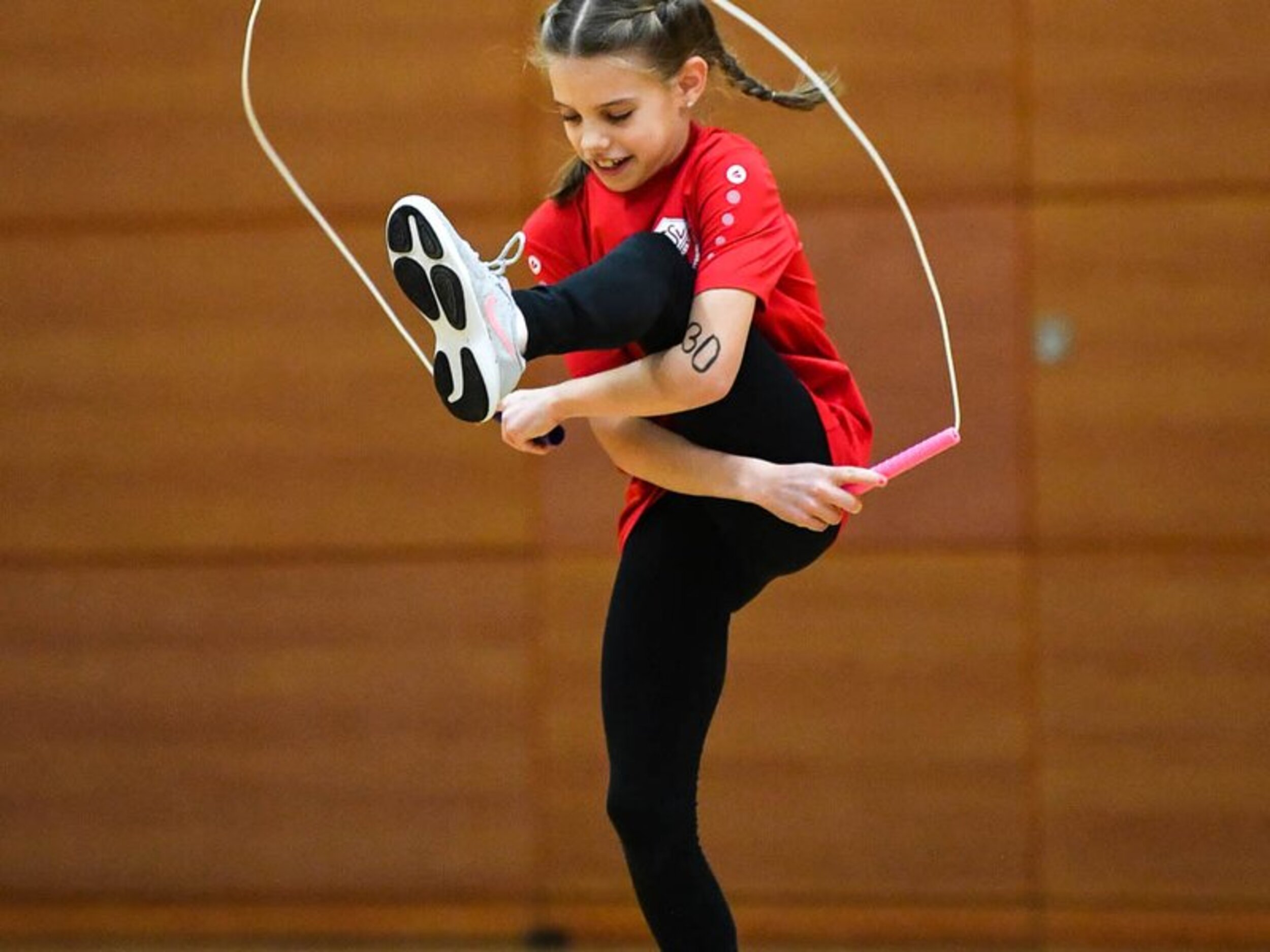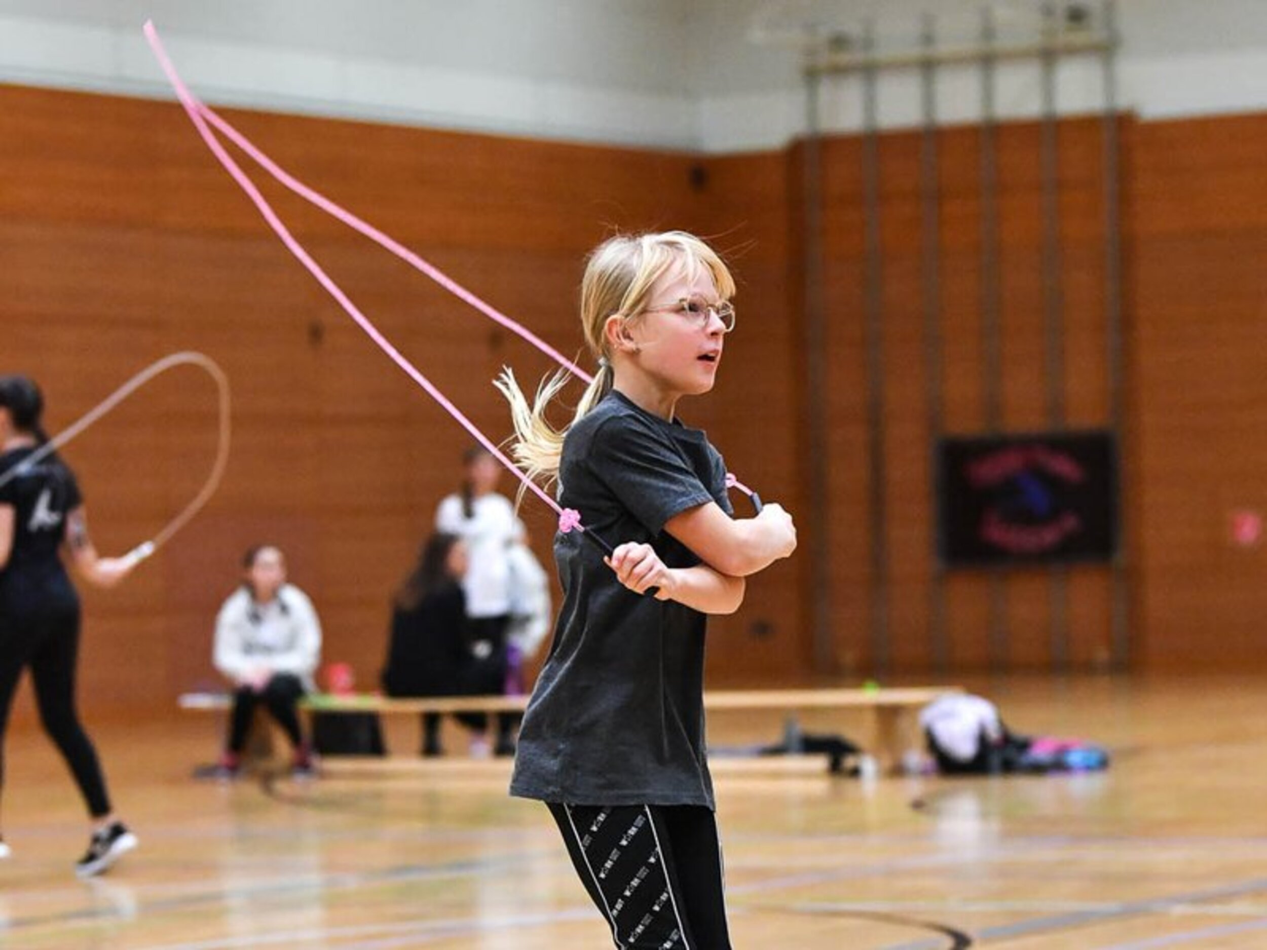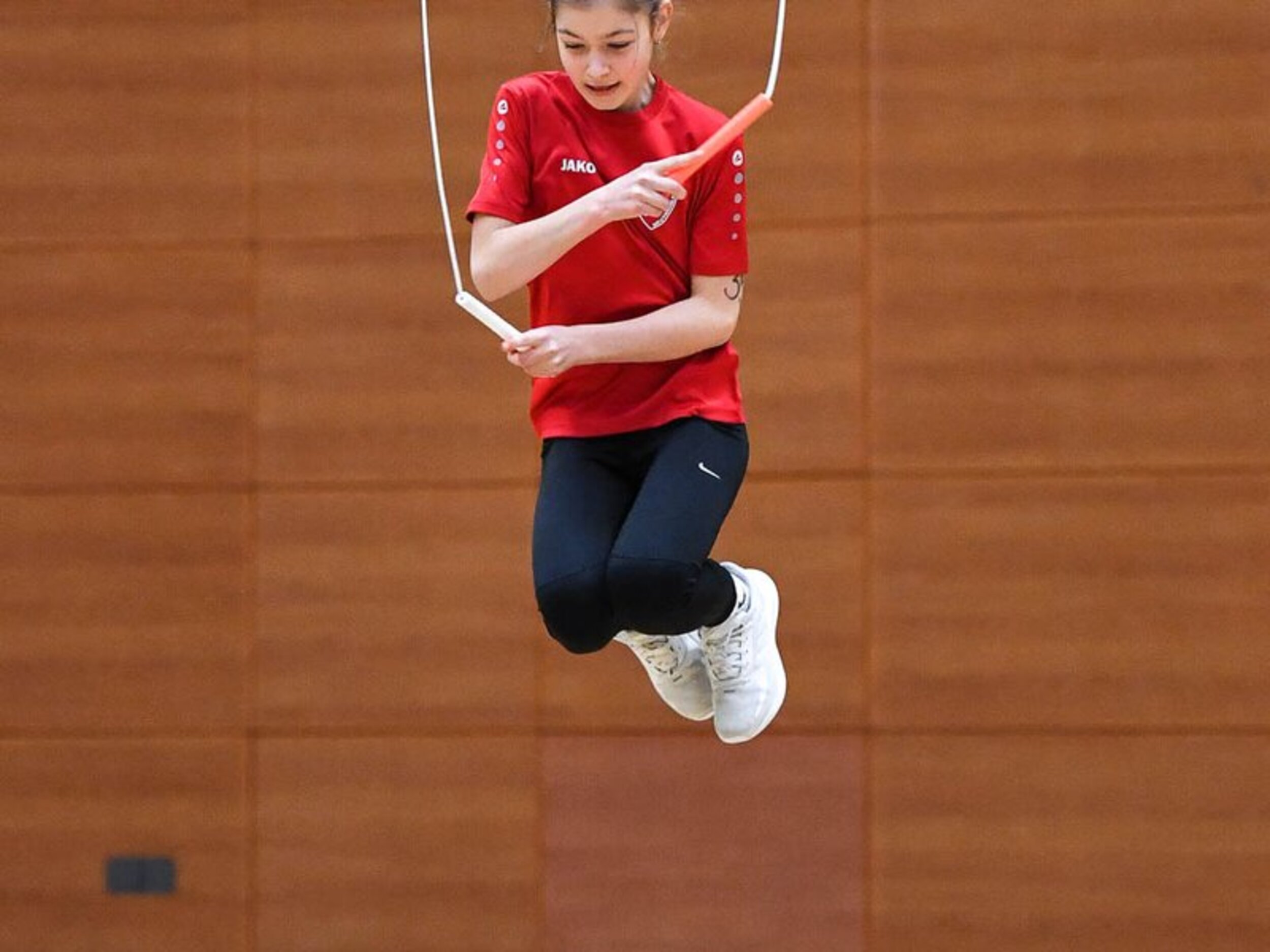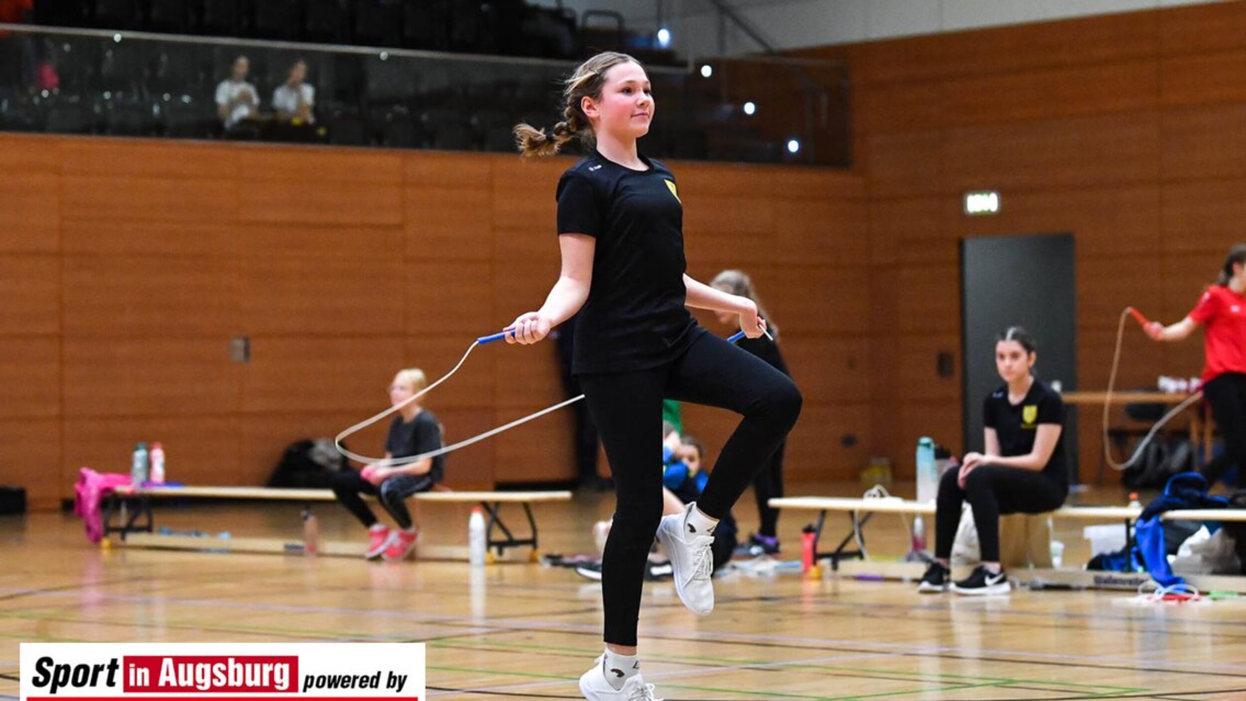 Am 02.12.2023 richtete der FC Stätzling in der Max-Kreitmayr-Halle in Friedberg den Bayerischen Landesnachwuchswettkampf im Rope Skipping aus. Da an diesem Samstag ein außerordentliches Schneechaos herrschte, konnten von den elf angemeldeten Vereinen nur sieben zum Austragungsort anreisen. Damit halbierte sich nicht nur das Teilnehmerfeld von rekordverdächtigen 123 auf nur noch 55 Konkurrenten/-innen, sondern es fielen auch einige eingeplante Kampfrichter/-innen aus. Glücklicherweise konnten jedoch ausgebildete Trainer/-innen und Helfer/-innen vor Ort einspringen, sodass es Magdalene Kroll und Julia Schmid vom BTV in kürzester Zeit gelang, eine neue Kampfrichtereinteilung zu erstellen und den Ablauf dementsprechend anzupassen. Die Anzahl der Wettkampfflächen musste von sechs geplanten Flächen auf vier reduziert werden. Trotz aller Umstände bot sich dem Publikum ein spannender Wettkampftag, der in die E3-Variante für Fortgeschrittene und den E4-Wettkampf für Anfänger/-innen unterteilt war.