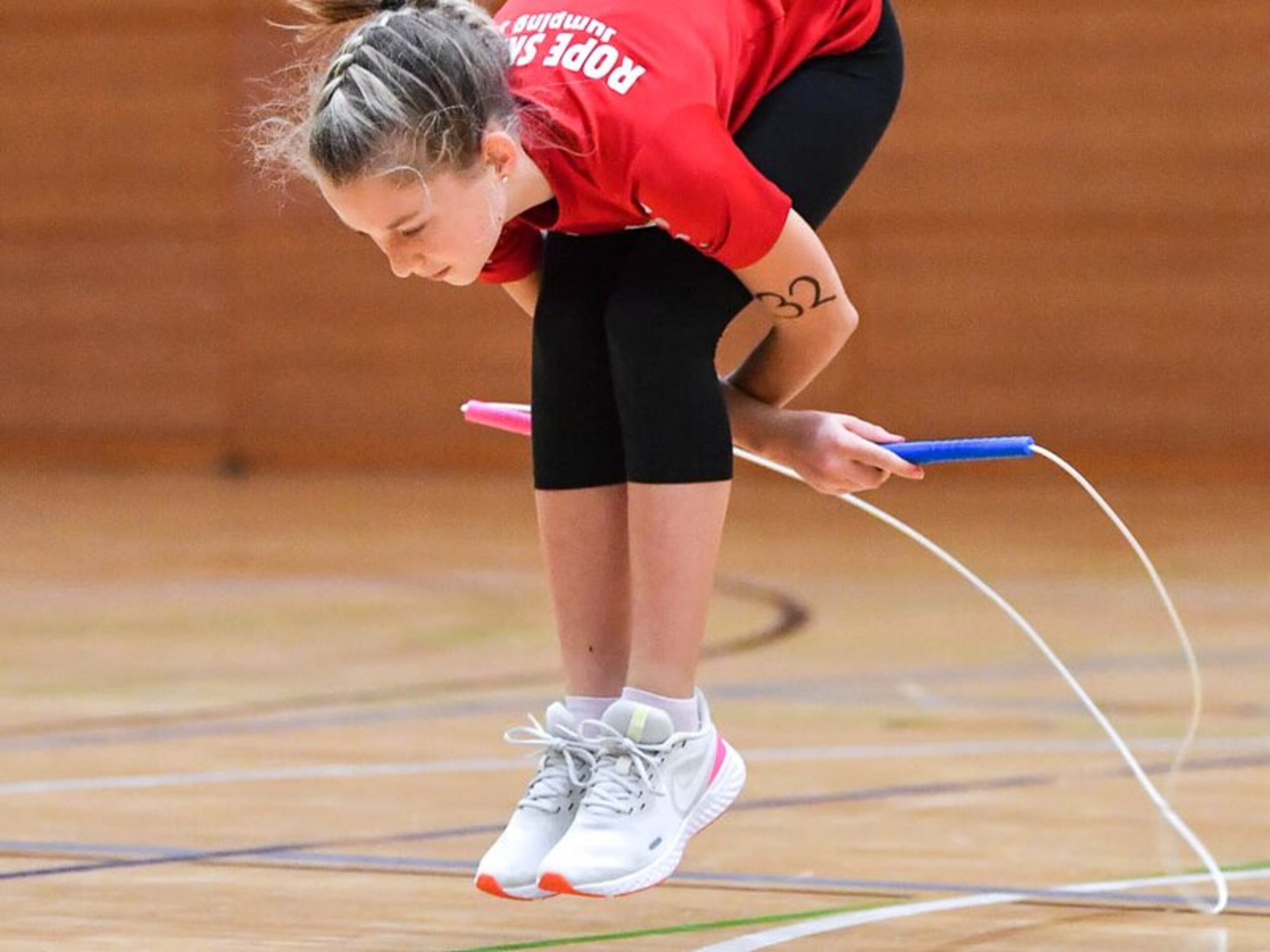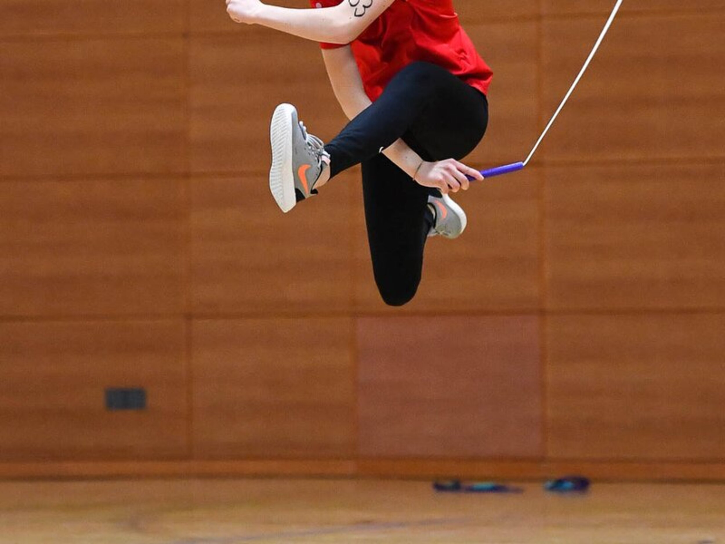 Mit etwas Verzögerung wurde die Meisterschaft um 11:30 Uhr mit dem Einlauf der Teilnehmer/-innen und Kampfrichter/-innen eröffnet. Zunächst galt es in den Speed-Disziplinen, Schnelligkeit und Kondition zu beweisen. Besonders schnell war dabei Helena Hammer vom TSV Wacker 50 Neutraubling. Obwohl sie als jüngste Teilnehmerin des E3-Wettkampfs an den Start ging, erreichte sie sowohl in der Kategorie 30 Sekunden Speed (abwechselnde Sprünge auf einem Bein) als auch in 30 Sekunden Double Under (Doppeldurchzüge) den Tagesbestwert. Unter den E4-Teilnehmer/-innen konnte sich Anne Roland von der TG Röttenbach mit 53 Zählern bei 30 Sekunden Criss-Cross (Kreuzsprünge) an die Spitze setzen. In den anstrengenden Ausdauerdisziplinen mussten die Anfänger/-innen außerdem 60 Sekunden Speed absolvieren, während die Fortgeschrittenen sogar 120 Sekunden lang durchhalten mussten.