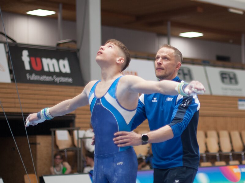 Neuzugang Luis Bolsinger gab sein Debüt im Team und kam an zwei Geräten zum Einsatz. Am Sprung erreichte er direkt die zweitbeste Wertung des gesamten Teams.