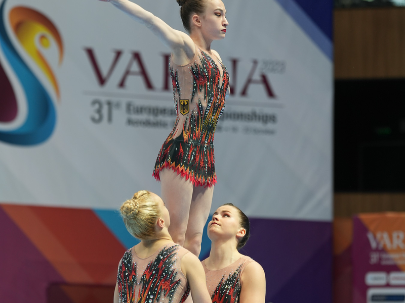 Große Freude herrscht beim Sportakrobatikverein Augsburg-Hochzoll 1957 e.V. Die strategische Aufbauarbeit der letzten Jahre trägt weiter Früchte. Das Damentrio Gloria Baur (19), Sabrina Wilbold (19) und Milla Neumayer (15) darf sich zusammen mit ihrer Trainerin Sandra Maresch über die Nominierung zur Weltmeisterschaft im September in Guimaraes, Portugal freuen und darüber, Deutschland dort als Teil der Nationalmannschaft vertreten zu dürfen.