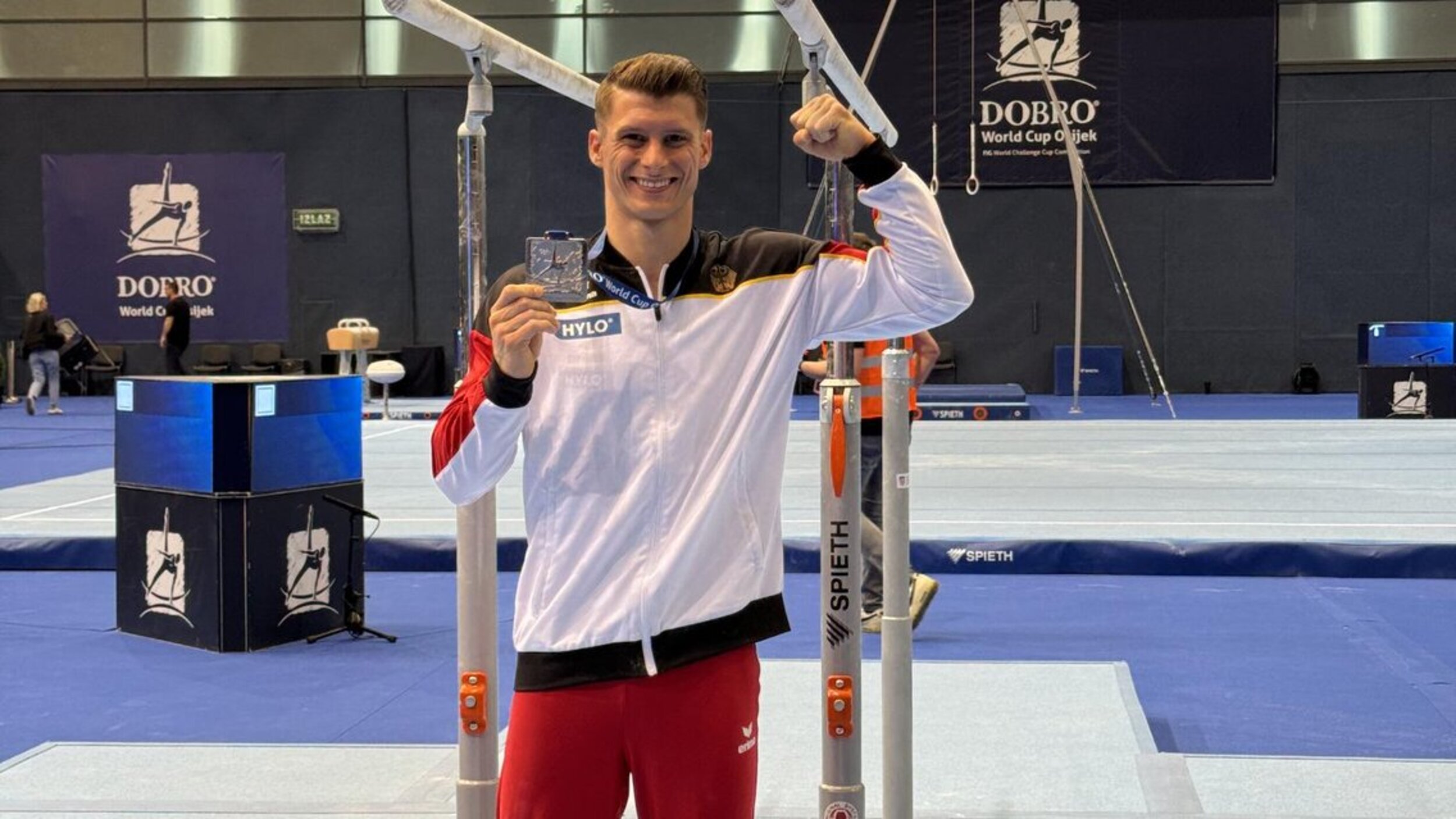 Lukas Dauser (TSV Unterhaching) is back in 2024! Der Weltmeister an seinem Paradegerät, dem Barren zeigte auch beim World Challenge Cup in Osijek wieder seine Stärke an diesem Gerät. Mit 15,55 Punkten kann er seine Leistung aus dem Vorjahr bestätigen und sogar in der D-Note noch etwas aufstocken. Am Ende belohnte sich Lukas dann auch mit der Goldmedaille. An den anderen Geräten war "Erfahrung sammeln" angesagt - leider reichte es für Lukas nicht für mehr als das eine Gerätefinale. Umso mehr richtet er nun den Fokus auf die erste EM-Qualifikation, bei der er getreu seines Mottos "Boooom" alle von seinen Leistungen überzeugen möchte.