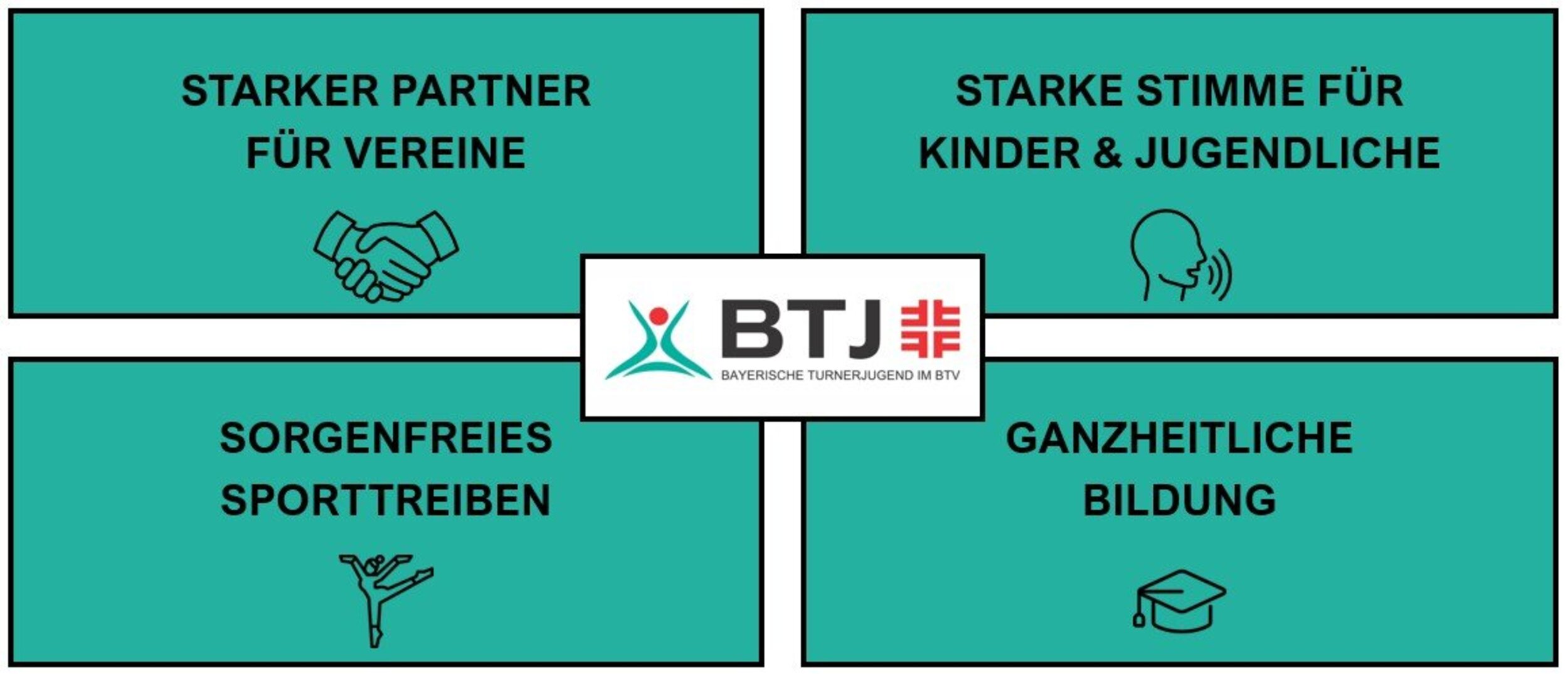 Die Bayerische Turnerjugend (BTJ) ist die Gemeinschaft aller Kinder und Jugendlichen sowie ihrer Vertretungen im Bayerischen Turnverband. Sie sorgt dafür, dass alle Kinder und Jugendlichen die Möglichkeit haben, sich zu bewegen und Turnsport auszuüben. Die BTJ setzt sich dafür ein, dass jeder am Turnsport und an der Turngemeinschaft teilhaben kann. Außerdem unterstützt sie Kinder und Jugendliche dabei, sich zu gesunden, glücklichen, selbstbewussten und verantwortungsvollen Menschen zu entwickeln.